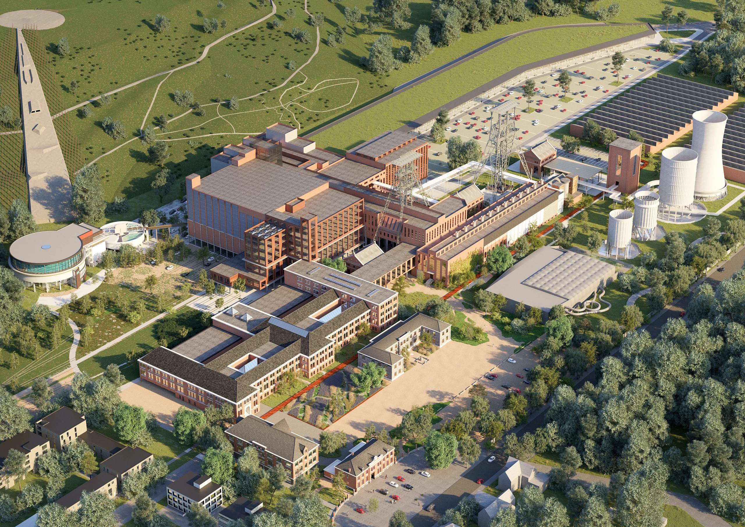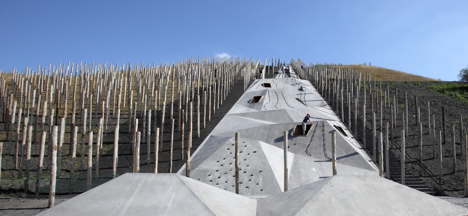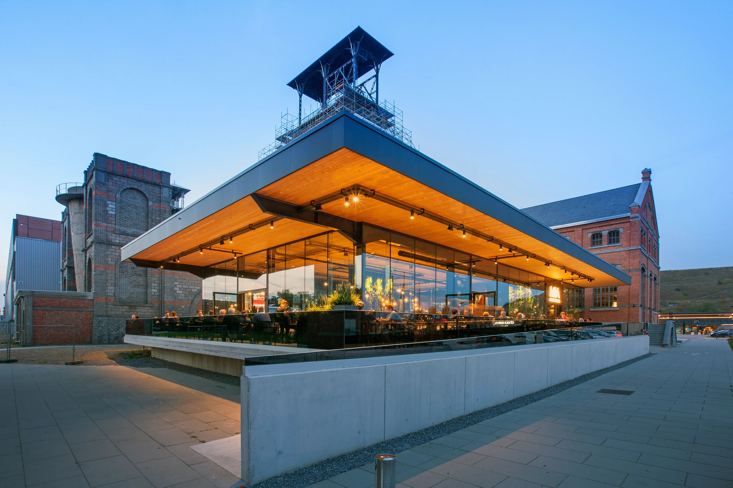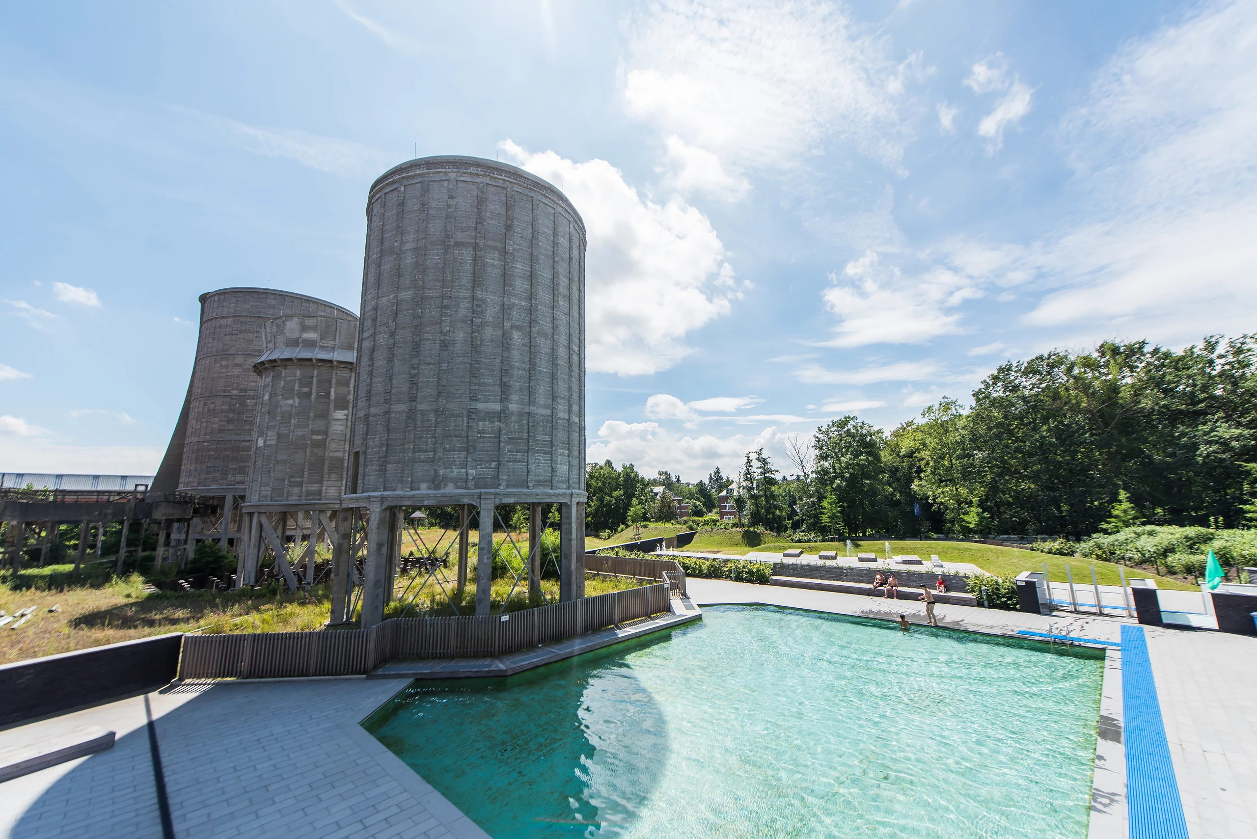 The plan also made room for leisure, introducing an indoor diving center in old settling ponds, a climbing wall, a swimming pool by the cooling towers, experience points in the coal washing plant, and a mining museum. A primary school has been set up in one of the mine buildings, bringing youthful energy to the site.