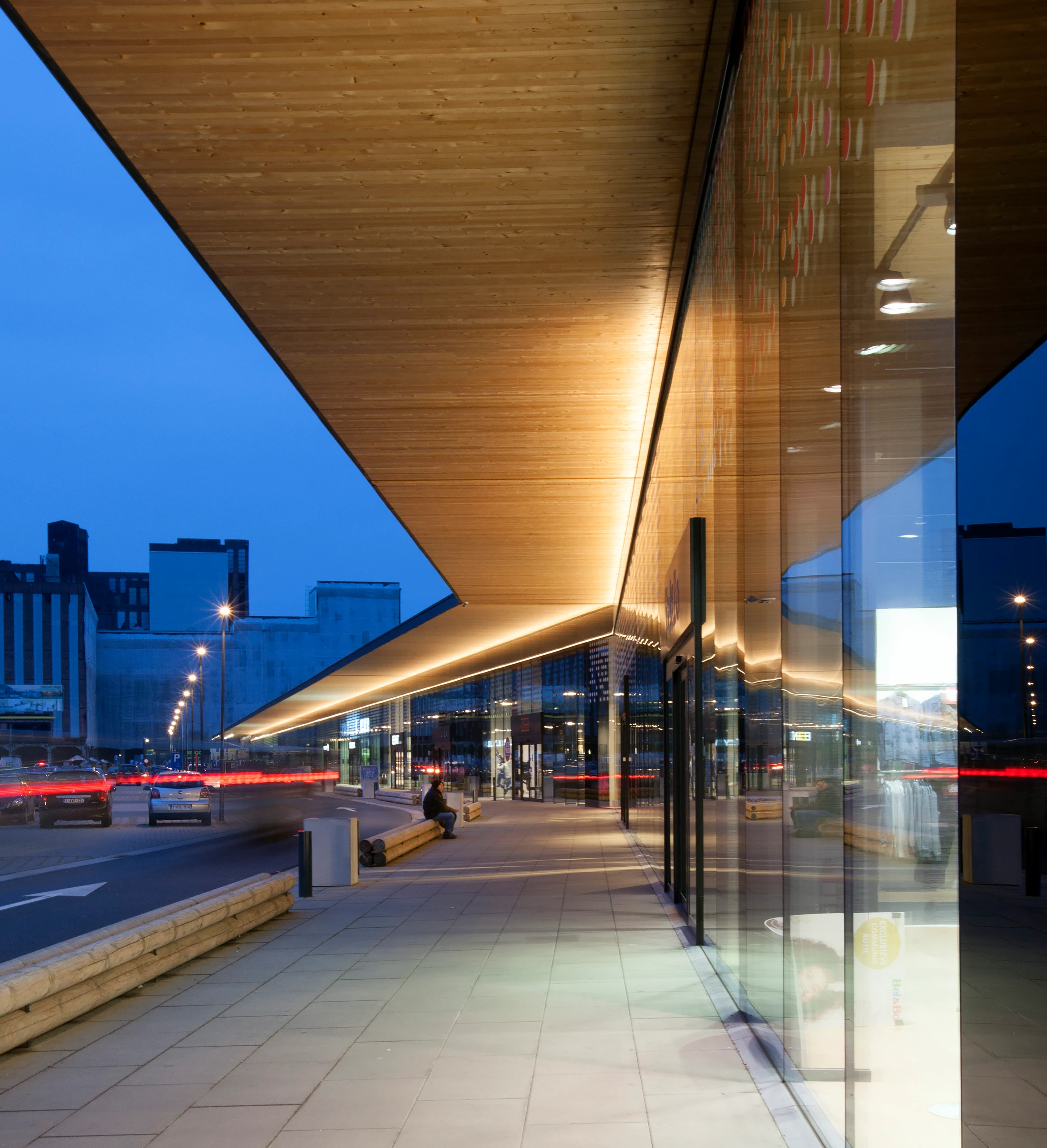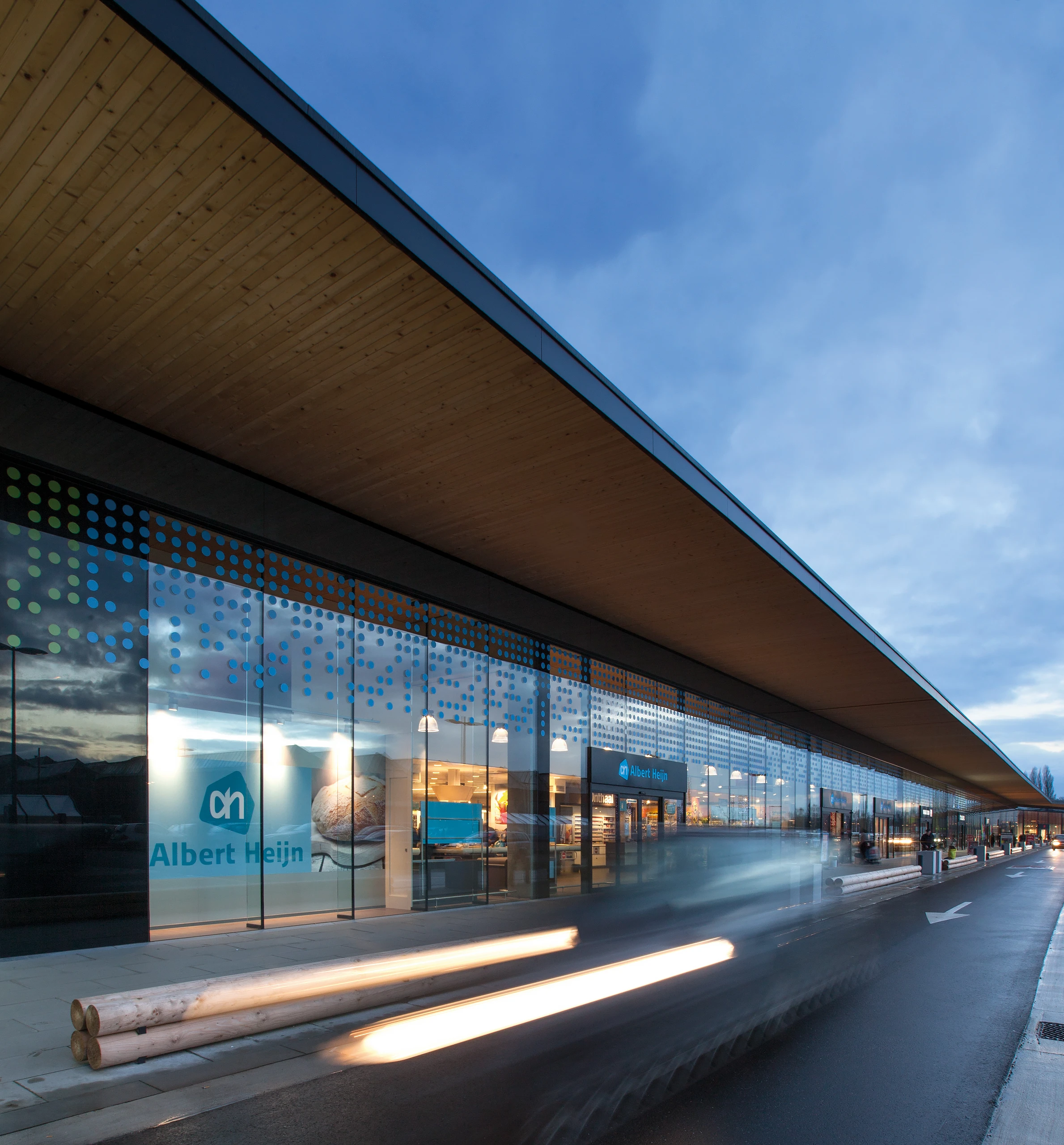 Central to the design of the park is its adaptability to accommodate future changes in use. The facade, a 300-meter-long continuous expanse of glass, is complemented by a 5-meter-wide wooden cantilevered roof, creating a sense of openness and connectivity with the surrounding area. In a departure from traditional marketing tactics, an innovative branding concept was integrated directly into the facade, avoiding the clutter of ad hoc advertising and contributing to a cleaner, more aesthetically pleasing environment.