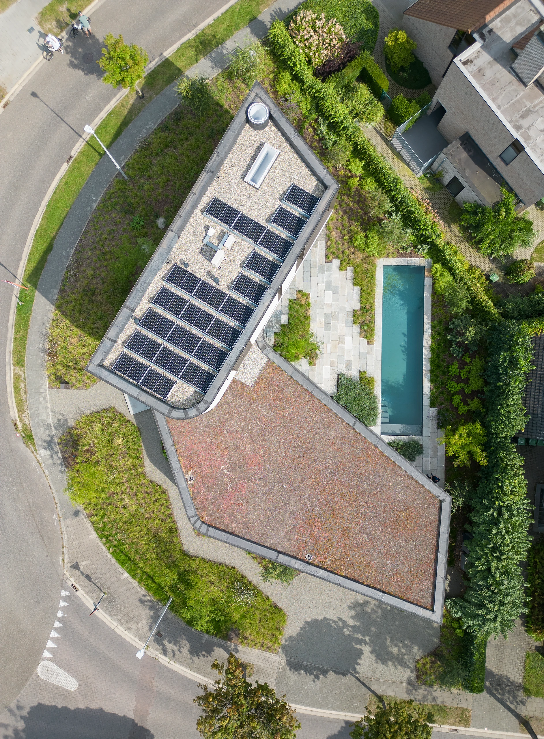 The special shape and location of the site, a wedge-shaped plot, and also located on a roundabout, resulted in a pleasant home that certainly does not have to compromise on privacy or intimacy.