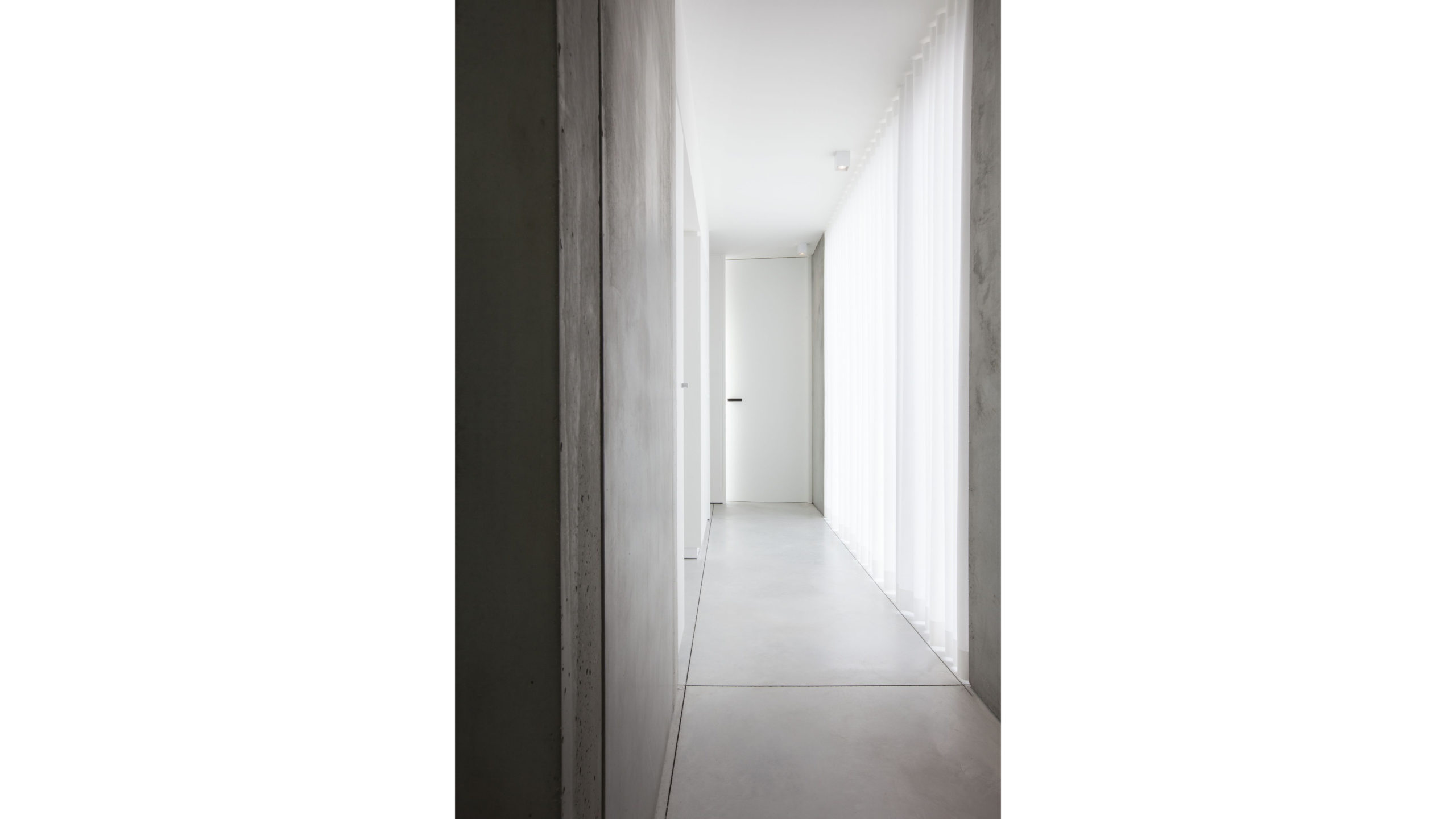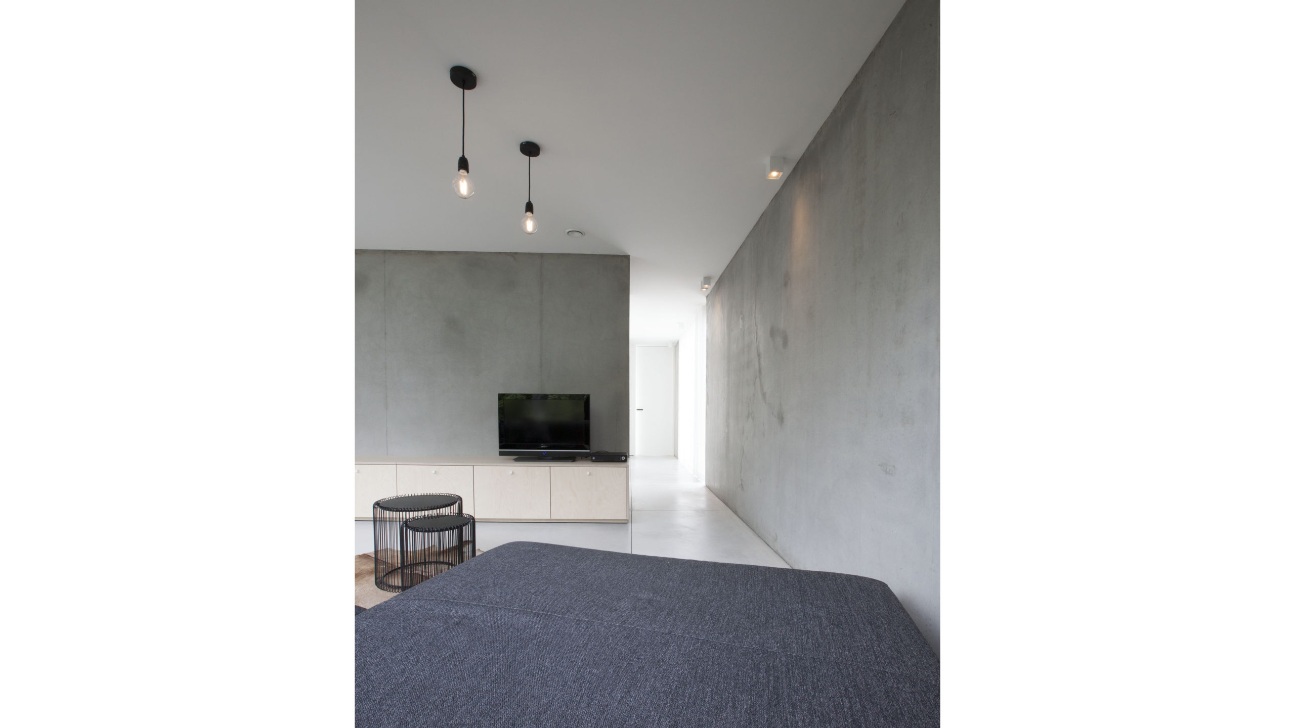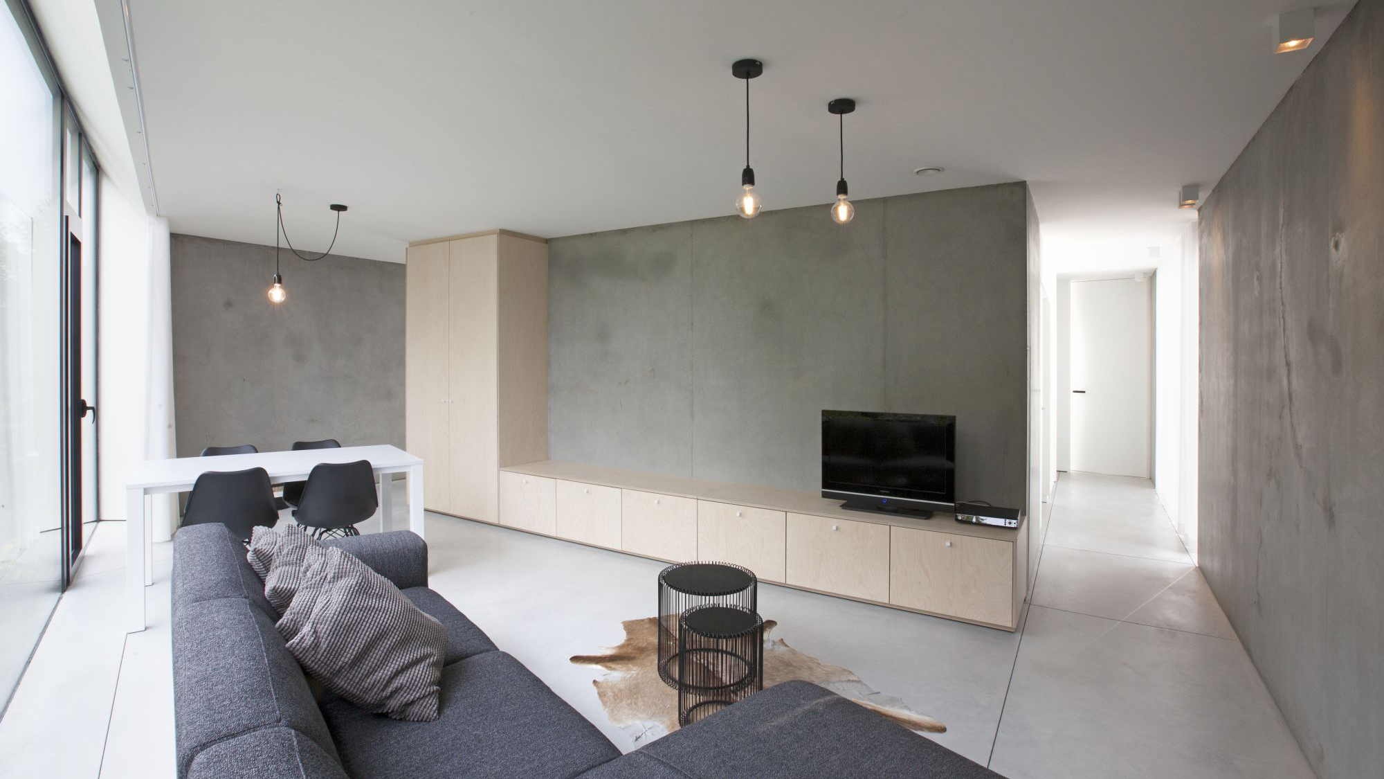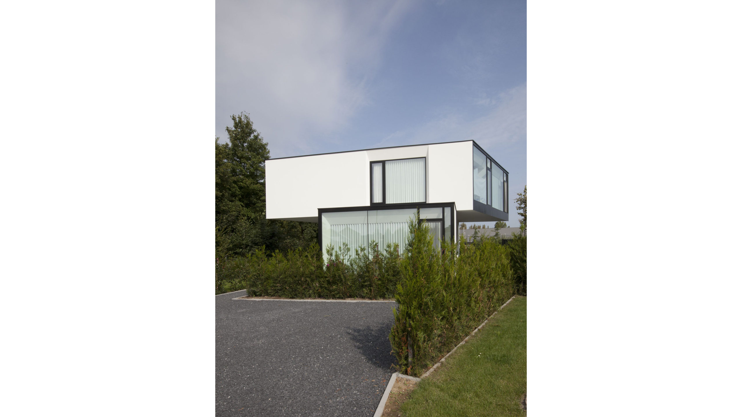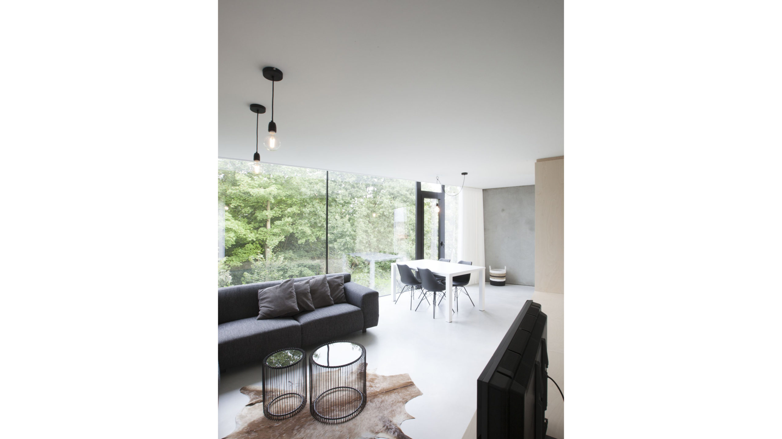 The owners of the plot wanted to conceive an architectural concept that is flexible in time and that can function as a single or multi-family home. A vertical division makes this possible. The basic volume of the house is conceived as a thoughtful placement of two volumes on top of each other. On the ground floor there is a house with a garden at the rear. The volume that was placed transverse to it comprises the second residential unit which has a garden at the front. In the option of the single-family house, this volumetricity still works and in both cases the volumetricity fully responds to the landscape environment in which the plot is located. The house makes a serene impression and opens up completely to the surrounding green landscape. The aim was to have a sustainable character and this is emphasized by the chosen construction principle. The entire structure is constructed in such a way that all interior walls are non-load-bearing and are therefore part of the flexible concept. We can speak of sustainability in the broad context of the word, or social sustainability.