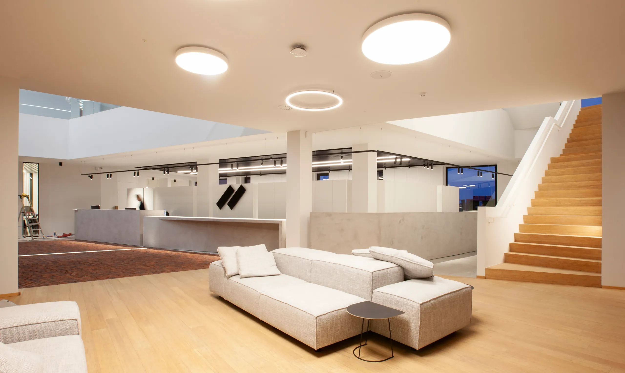 The fourth generation of the Nelissen family has infused the establishment with an experiential approach, benefiting visitors and staff alike. The design process involved thorough planning to accommodate all functions and individual needs, resulting in an open yet intimate office landscape on the ground floor. This area is adorned with premium materials and features a video wall in the waiting area that showcases all employees, enhancing the company’s familial essence.