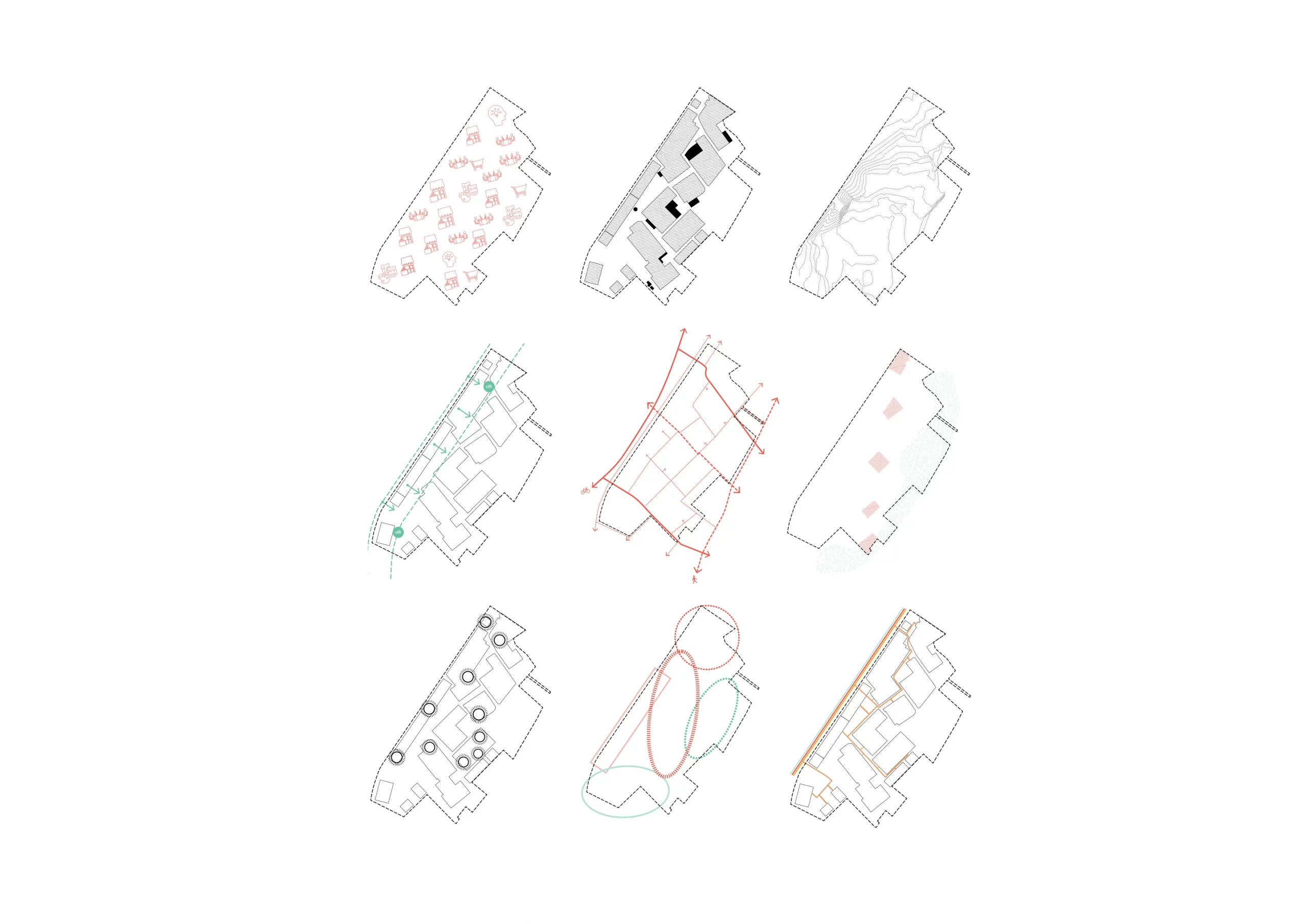 This project starts with the unique attributes of the site – its topography and existing structures – viewed not as constraints but as opportunities. The guiding concept of “Space Identity” steers the development away from conventional functional layouts towards a strategy that integrates sustainability, circularity, and the preservation of identity. This approach promises a development that respects the site’s heritage while positioning it for future generations.