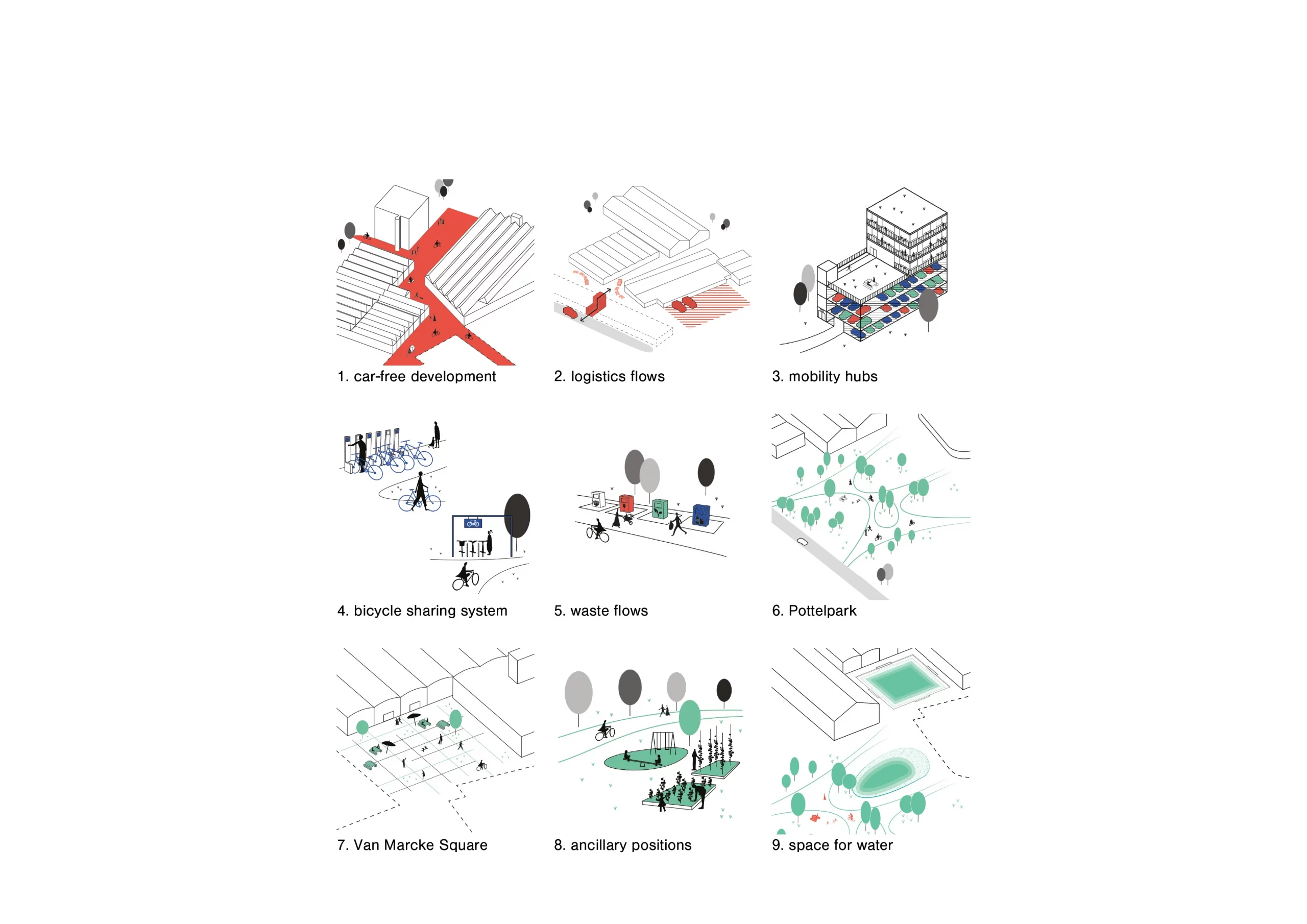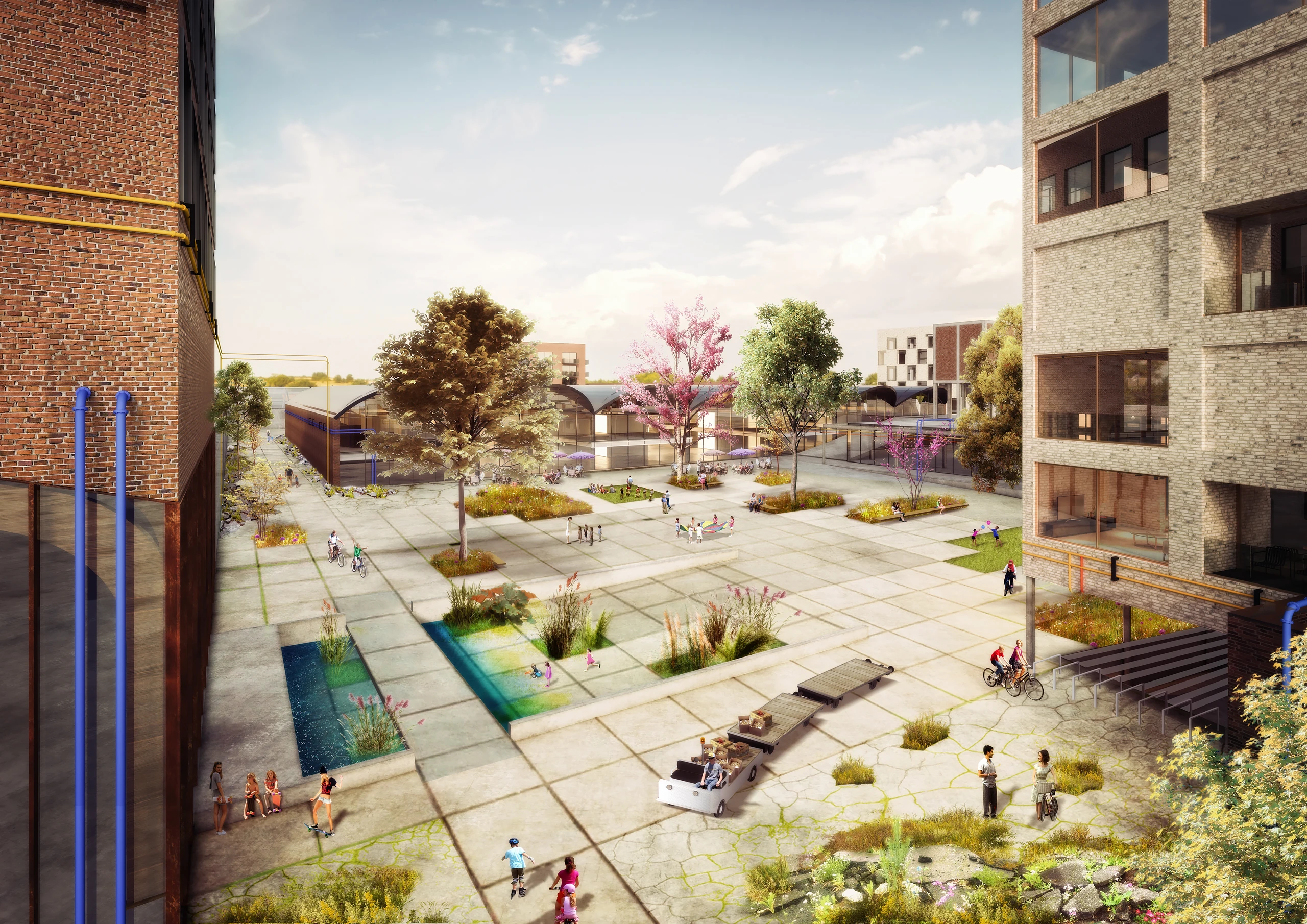 As this vision for the Van Marcke site unfolds, it aims to weave together living, working, and recreational environments into a cohesive urban tapestry. This development is not just about building structures; it is also about fostering a sustainable, vibrant community space that evolves with its inhabitants. The project stands as a testament to thoughtful urban planning, focusing on long-term adaptability and community integration.