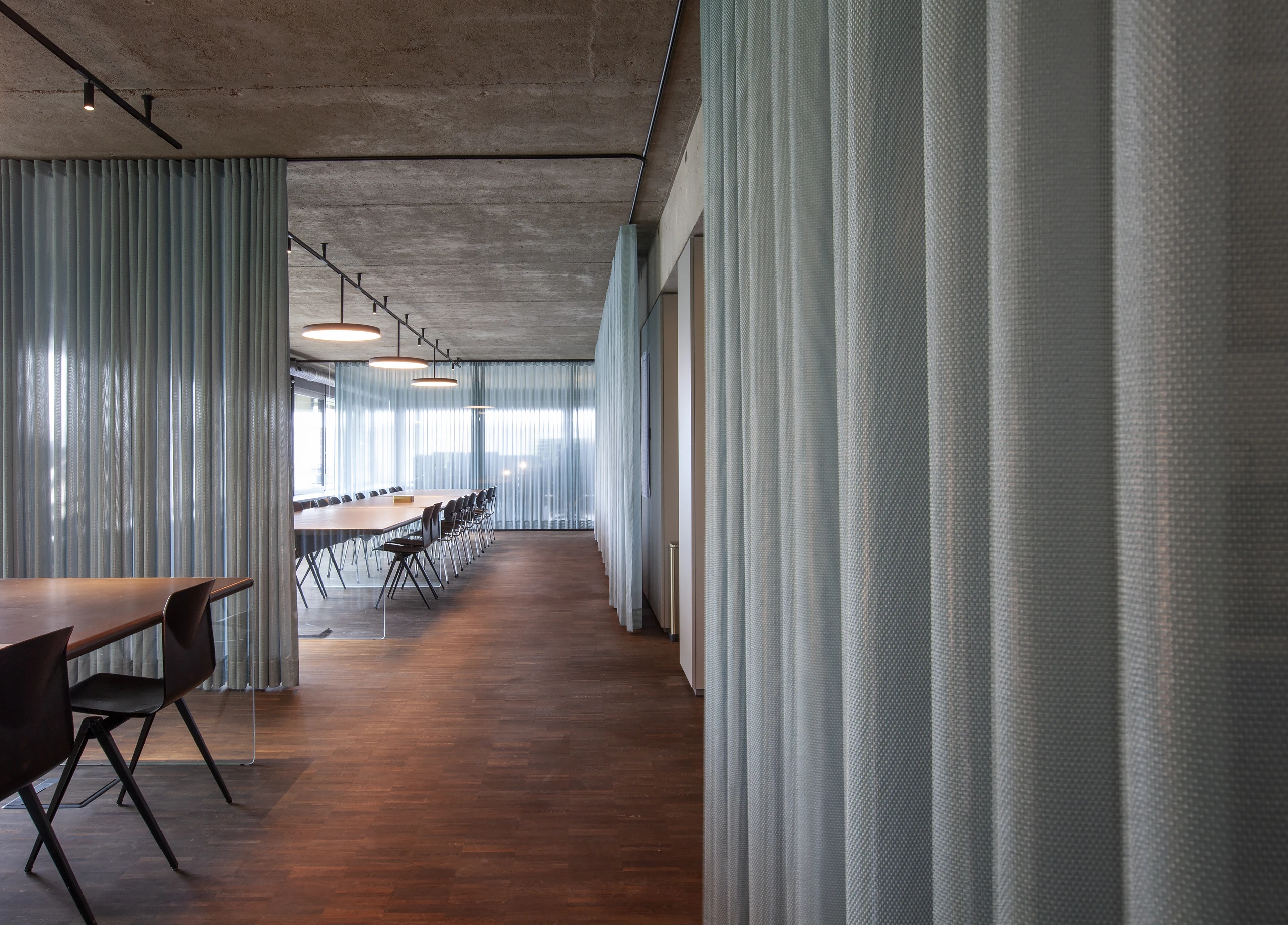 The characteristic construction method has been rediscovered and the design is also based on honesty in the use of materials. The open plan form with an abundance of daylighting gave rise to a simple concept. The centrally located circulation center is the location where most consultation takes place and the further one distances oneself from this, the more tranquility there is. The landscape offices are therefore located at the head of the plateau. The space in between can be used for various consultations. Under the concrete beam structure, the placement of open racks divides the large middle zone into a consultation zone and a circulation zone.