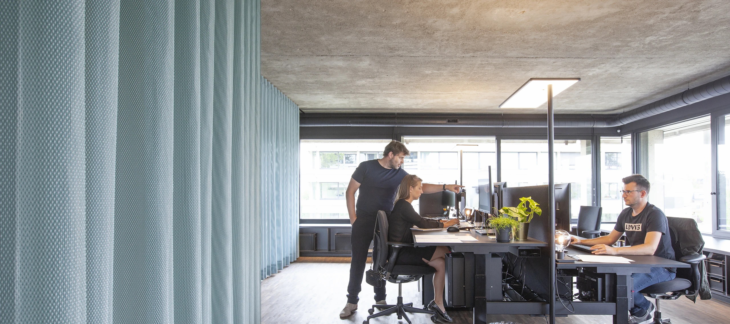 In addition to a new environment, the UAU collectiv team has also adopted a new working method since the move, in which targeted focus work is planned twice a day. The individual lights on the desks indicate when this UAU focus arrives. The rules of the game are simple and aimed at performing concentration work without interfering. Consultation is meticulously scheduled in the agendas and this is at the right meeting places.