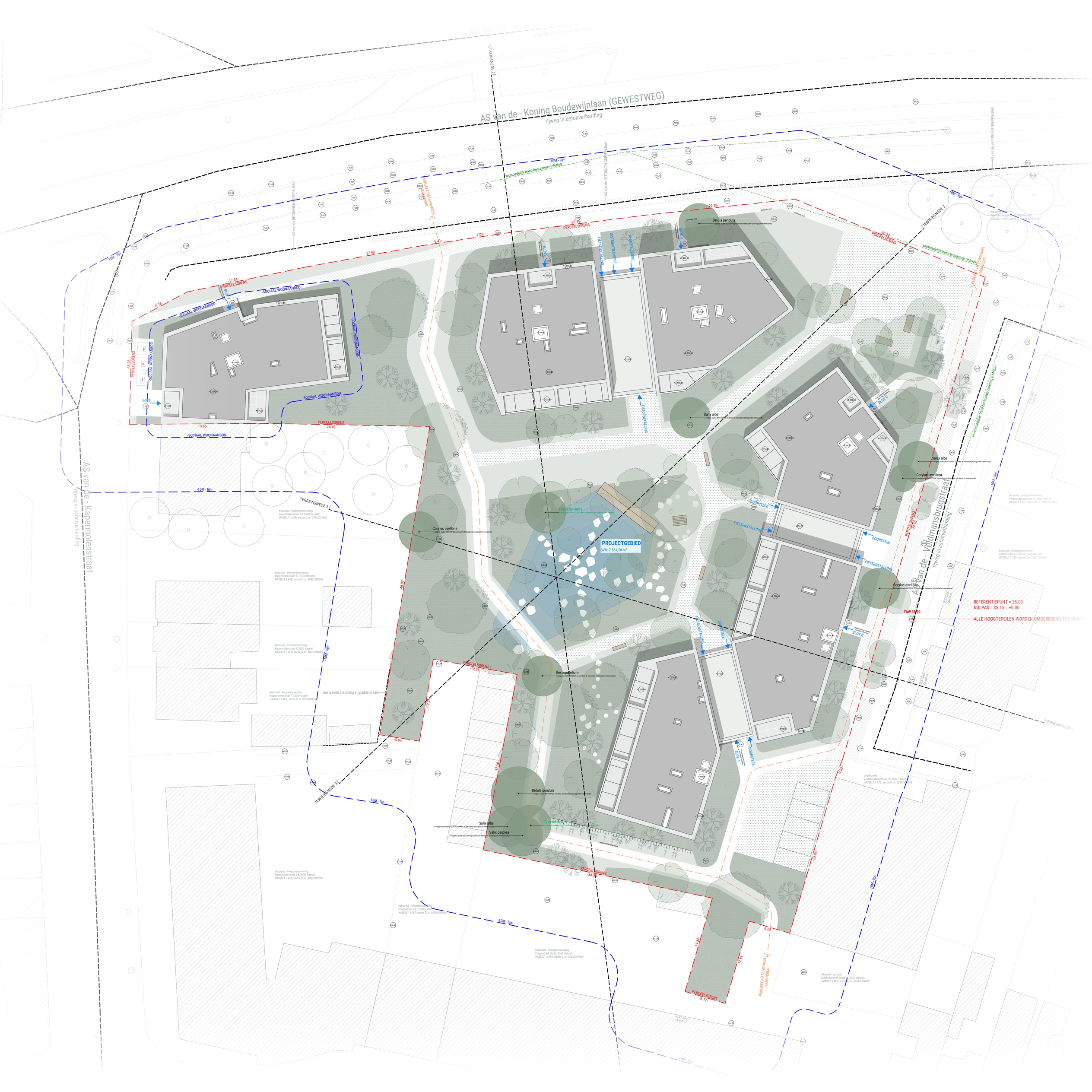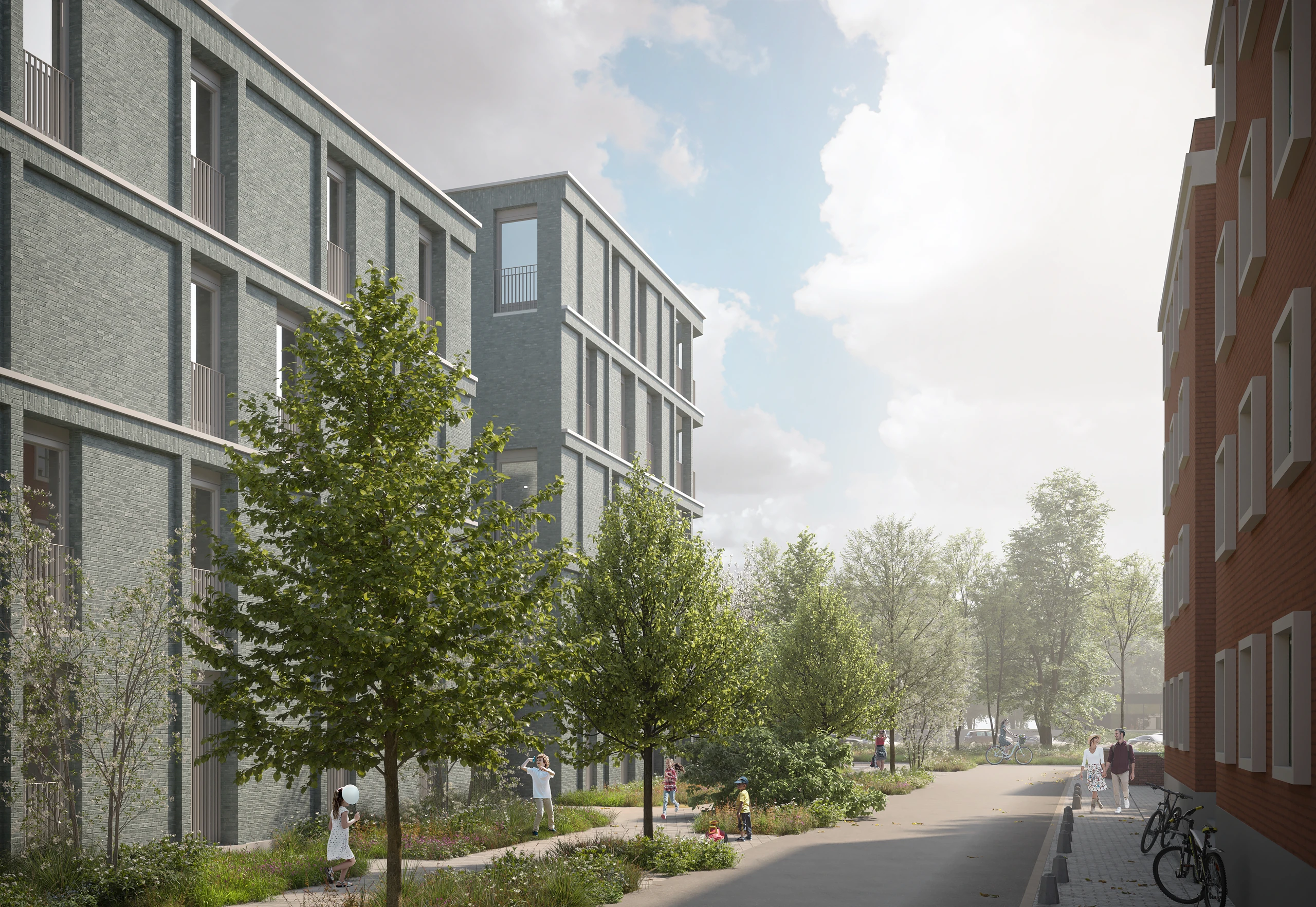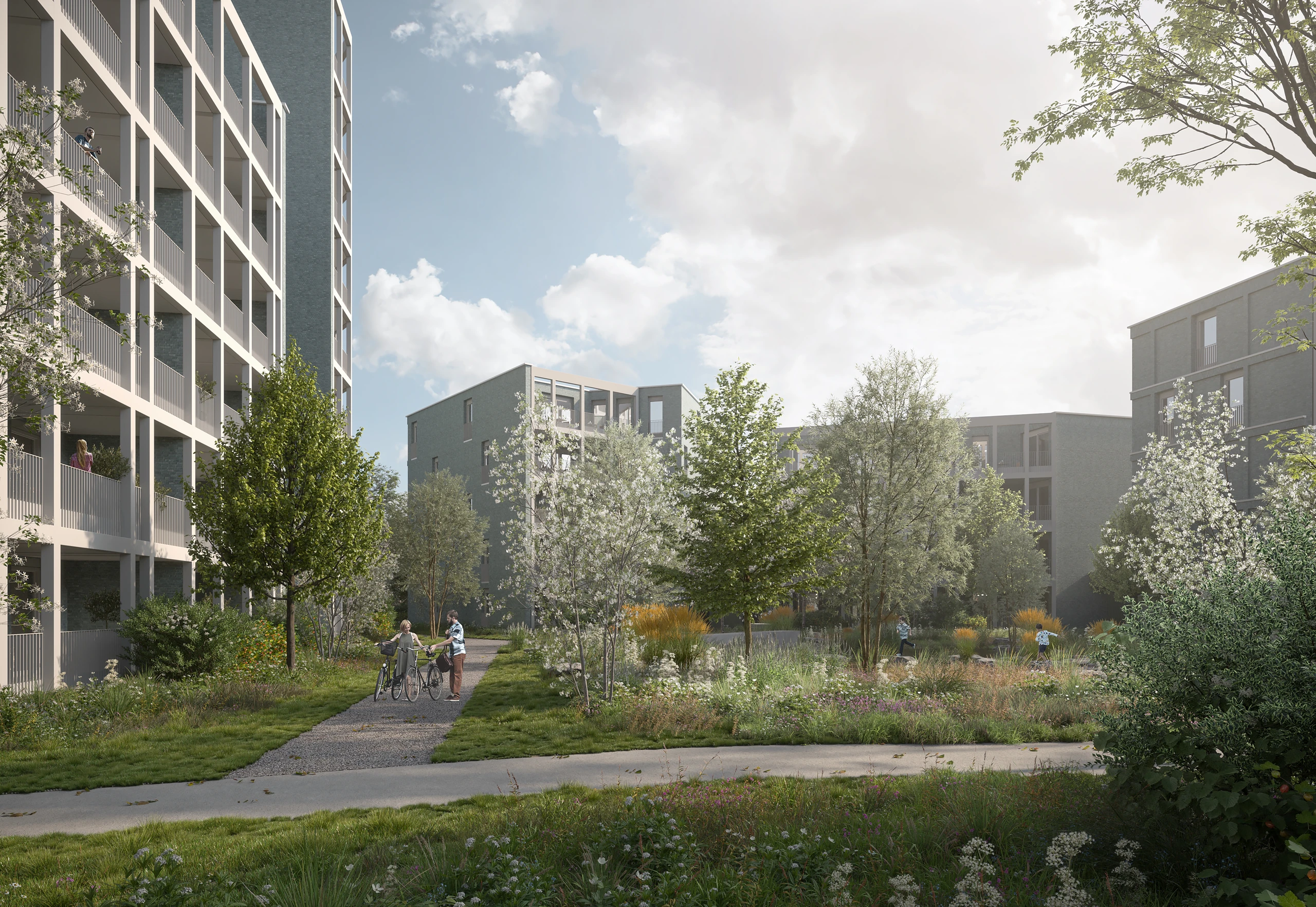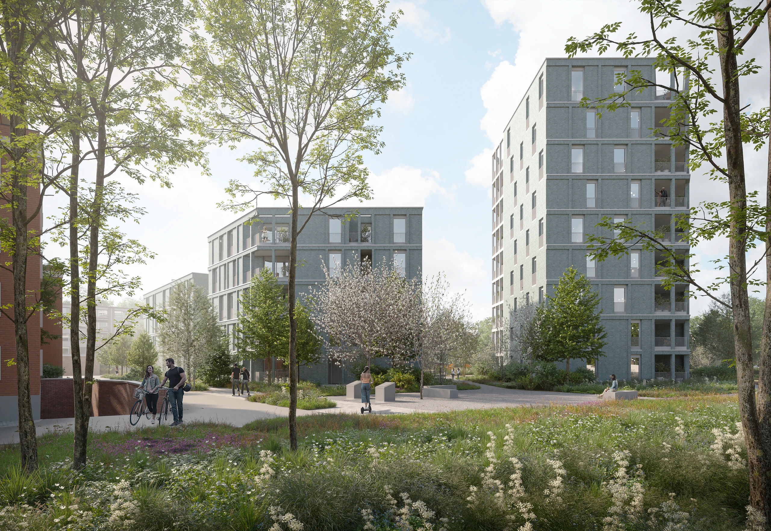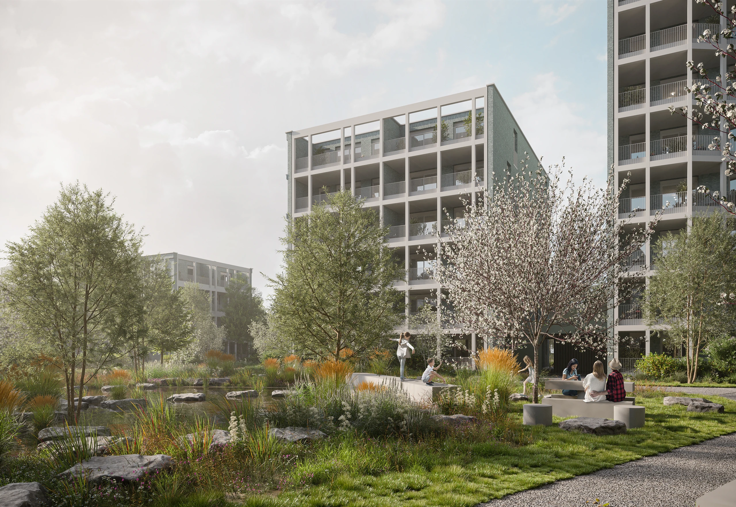 Central to the project’s landscape strategy is the preservation of existing trees and the introduction of new green spaces, enhancing the ecological diversity and visual appeal of the area. The inclusion of social housing, developed in partnership with a local housing authority, underscores the commitment to community and inclusivity.